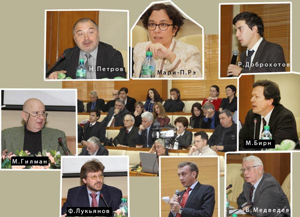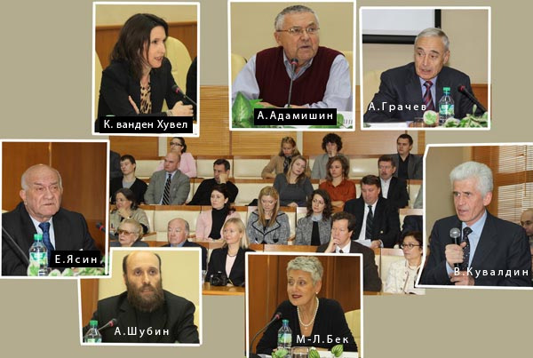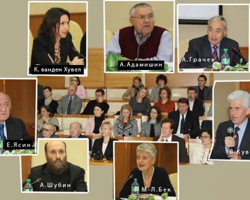 The Conference gathered together prominent historians, economists, active politicians, human rights activists, philosophers, and social scientists from Russia, the United States, Germany, and France. Speakers at the Conference included: Anatoli Adamishin (a diplomat) , Marie-Louise Beck (Bundestag member, Germany), Malcolm Byrne, (Deputy Director and Director of Research, National Security Archive, USA), Thomas Blanton (Director, National Security Archive, USA), Martin Grant Gilman (Professor at the Higher School of Economics), Andrei Grachev (historian, journalist), Ruslan Grinberg (Director, Institute of Economic Studies of the Russian Academy of Sciences), Alexander Daniel (historian, Board member of Memorial Society), Michael Dobbs (journalist, USA), Olga Zdravomyslova (social scientist, Executive Director of the Gorbachev Foundation), Artemy Kalinovsky (historian, University of Amsterdam, the Netherlands), Stephen Cohen (Professor of Russian Studies and History at New York University), Maria Lipman (journalist, Editor-in-Chief of Pro et Contra), Fedor Lukyanov (political scientist, Editor-in-Chief of Russia in Foreign Affairs), Vadim Medvedev (corresponding member of the Russian Academy of Sciences), Vladimir Mukusev (journalist), Jack Matlock (U.S. Ambassador to the Soviet Union), Nikolai Petrov (political scientist, the Moscow Carnegie Center), Sergei Rogov (Director of the Institute of the US and Canadian Studies), Marie-Pierre Rey (Director, Centre for Slavic Studies at the Sorbonne, France), Svetlana Savranskaya (Director for Cooperative Projects with Russian Archives and Institutes, National Security Archive, USA), William Taubman (political scientist, Bertrand Snell Professor of Political Science at Amherst College, USA), Dmitri Trenin (political scientist; Director and Chairman of the Scientific Council at the Moscow Carnegie Center), David Hoffman (Foreign Editor at The Washington Post, USA), Katrina vanden Heuvel (Editor and Publisher of The Nation), Alexander Shubin (historian), Evgeni Yasin (Research Supervisor at the Higher School of Economics), and others.