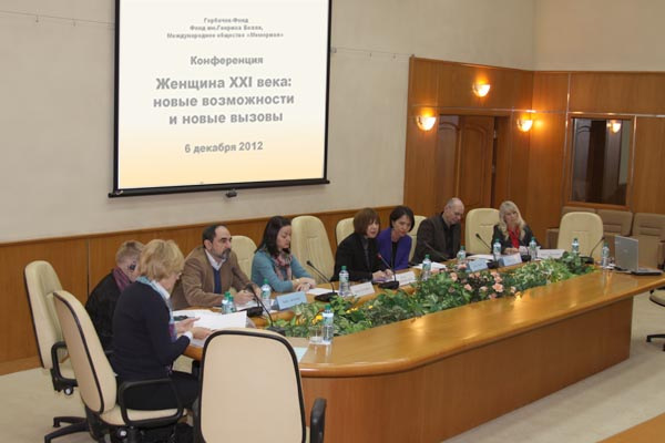 6 December , 2012 the Gorbachev Foundation hosted an international conference The 21st Century Woman: New Opportunities and New Challenges. The conference was co-organised by The International Foundation for Socio-Economic and Political Studies (The Gorbachev Foundation), the Heinrich Böll Foundation and the Memorial International Society.