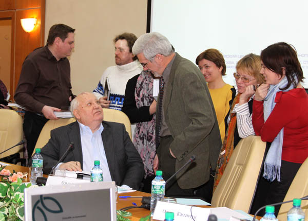 Слева направо: Ирина Костерина (Фонд им. Генриха Белля), Михаил Горбачев, Ольга Здравомыслова, Ольга Каменчук.