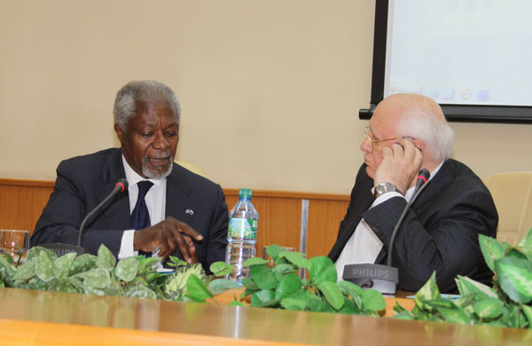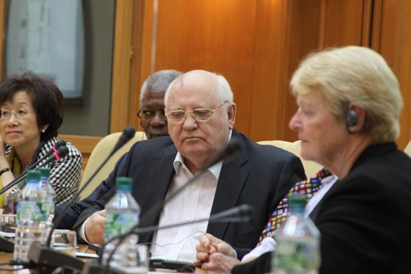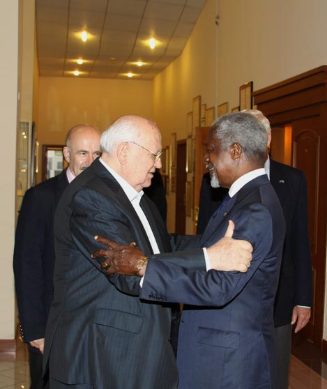 On July 16, 2013, Mikhail Gorbachev met leaders of The United Nations Foundation, an organisation launched to provide support for activities of the United Nations. Participants in the meeting included the UN Foundation’s Founder and Chairman Ted Turner and Members of its Board of Directors – former Secretary-General of the United Nations Kofi Annan, former Prime Minister of Norway Gro Harlem Brundtland, and former Minister of Foreign Affairs of the Russian Federation Igor Ivanov.