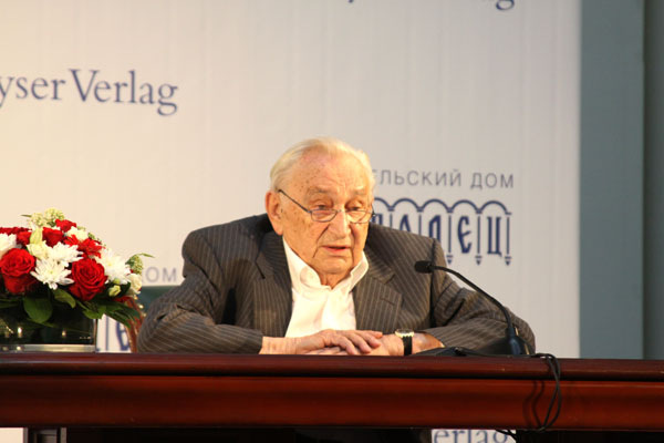 "Am Abgrund" wirbt für mehr Verständnis für die Politik des Kreml in der Ukrainekrise. Im Mittelpunkt aber steht an diesem Tag in Wahrheit ein anderer: SPD-Legende Egon Bahr, 93 Jahre alt, und vor mehr als vier Jahrzehnten mitverantwortlich für Kanzler Willy Brandts Entspannungskurs gegenüber der Sowjetunion.