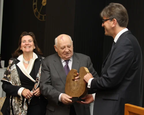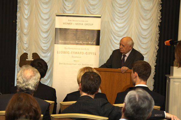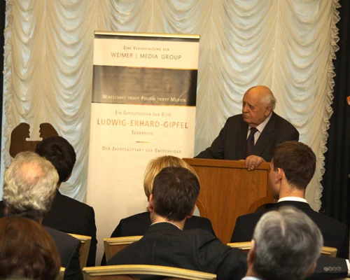 The award was established by the German media group Weimer Media Group and is awarded for "the cause of entire life". The founders specifically emphasize Mikhail Gorbachev’s contribution to the termination of the Cold War. A video recording of the ceremony will be shown in Germany in January, as part of the Ludwig Erhard Symposium, a major annual conference traditionally attended by many leading German politicians and economists.
