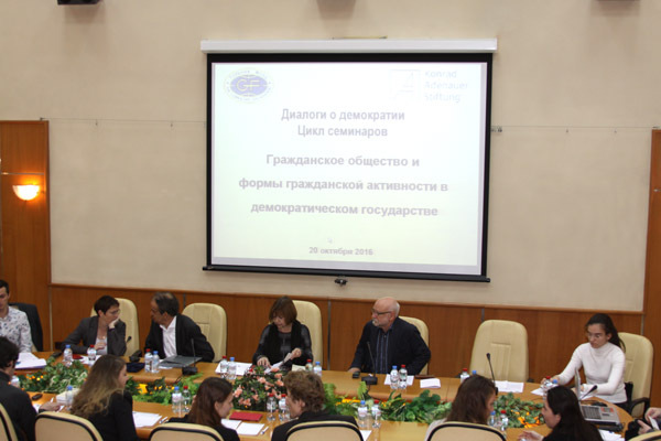 Co-hosting the seminar were Olga Zdravomyslova, Executive Director of the Gorbachev Foundation, andClaudia Crawford, Head of the Konrad Adenauer Foundation’s offices in Russia.