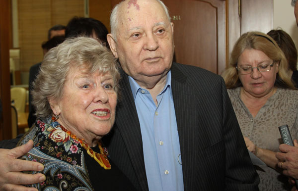 The hallway overflowed on Tuesday not only with the plaques, awards and mementos that Gorbachev received over the years, but also with an eclectic and powerful group of well-wishers and Massie fans. They include venerable statesmen instrumental in bringing about the end of the Cold War, as well as representatives of a new generation of businessmen and officials concerned about the status of relations between Russia and the West.