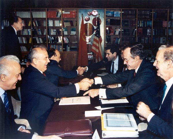 George Bush rose and held out his hand to me. Photographers were invited to the room in which the talks were held, and they recorded that moment: the two powers that for decades had held the world in a state of stress no longer regarded one another as foes.