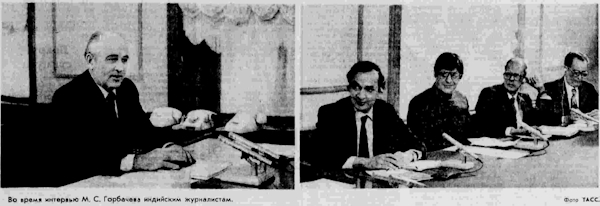 21 ноября в связи с предстоящим визитом в Индию М.С. Горбачев дал интервью индийским журналистам[29].