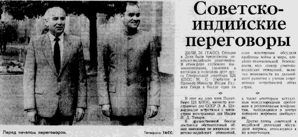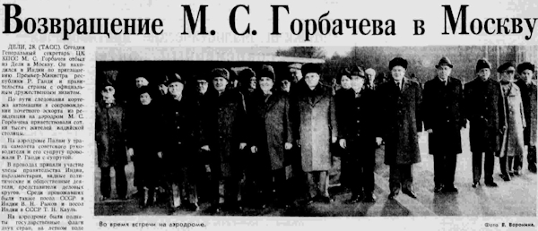 24 ноября М.С. Горбачев отбыл из Москвы в Дели по приглашению Премьер-министра Индии Р. Ганди и индийского правительства с официальным дружественным визитом[32].