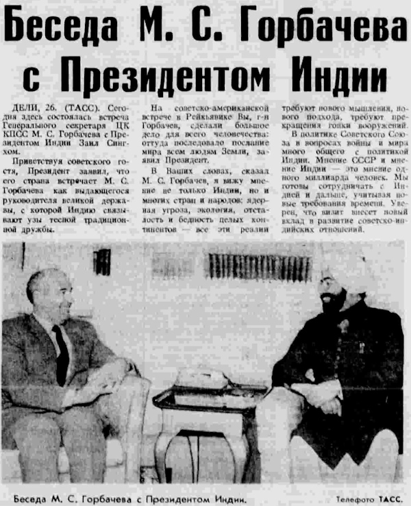 25-28 ноября состоялся визит М.С. Горбачева в Индию[33].