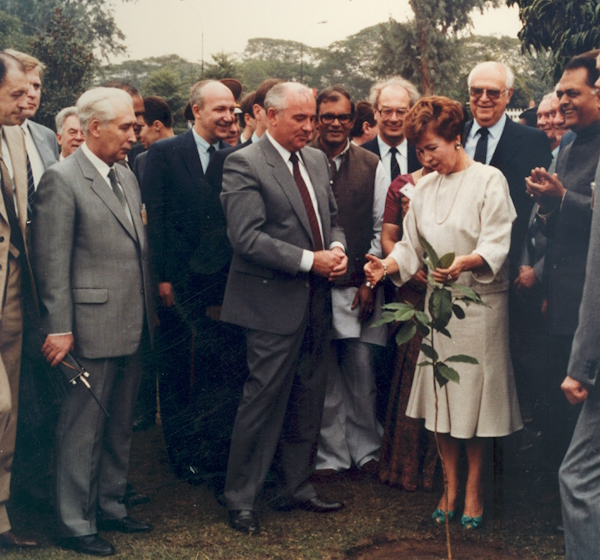 М.С. Горбачев: «Важное место в борьбе против угрозы войны принадлежит развивающимся странам, где проживает более двух миллиардов человек. Мне хотелось бы особо подчеркнуть роль великой Индии в этом благородном деле». Из предисловия М.С. Горбачева к сборнику его выступлений и статей «Миру нет альтернативы», подготовленному в ноябре к печати индийским издательством «Пэтриот паблишерз».