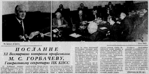 - Встреча М.С. Горбачева с делегацией Всемирной Федерации профсоюзов