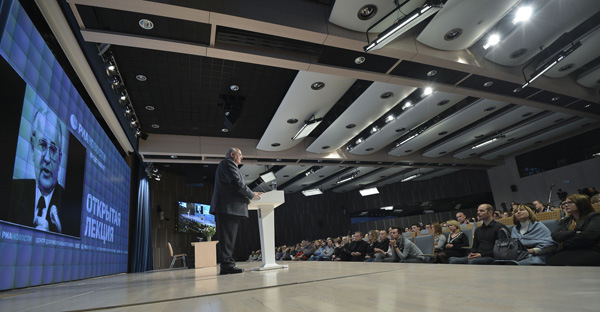 По окончании лекции М.С.Горбачев ответил на вопросы присутствующих и представителей СМИ.