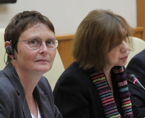 Павел Палажченко, руководитель пресс-службы Горбачёв-Фонда; Клаудиа Кроуфорд, руководитель Фонда Конрада Аденауэра в Российской Федерации.