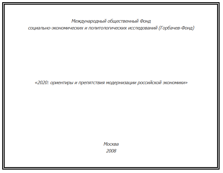 Опубликована брошюра по материалам круглого стола: «2020: ориентиры и препятствия модернизации российской экономики», состоявшегося в Горбачев-Фонде 10 июня 2008 г. Круглый стол был организован Горбачев-Фондом при участии Института Экономики РАН, Движения «Союз социал-демократов», Национального Инвестиционного Совета. Брошюра содержит авторизованные выступления участников Круглого стола.