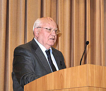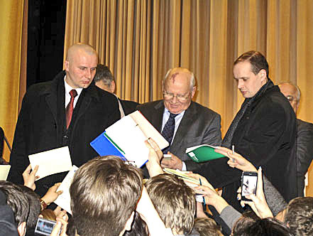 24 марта Михаил Сергеевич Горбачев выступил перед студентами МГУ с лекцией «Россия и современный мир». На встрече присутствовали ректор МГУ В.А.Садовничий, учащиеся филологического, философского, юридического, политологического, факультетов, журфака и факультета глобальных процессов. Атмосфера встречи была живой и непринужденной.