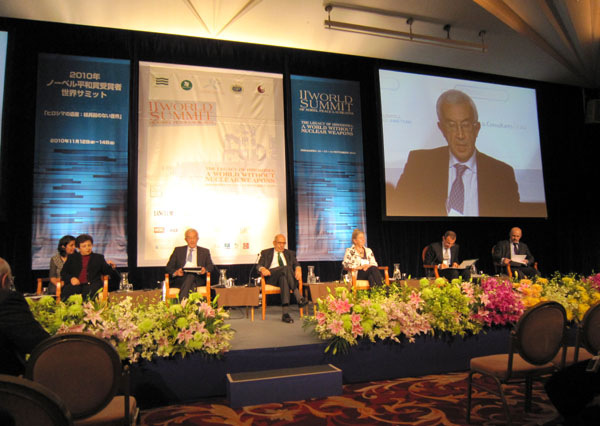 С 12 по 14 сентября 2010 г. в японском городе Хиросима прошел очередной 11-й всемирный Форум лауреатов Нобелевской премии мира. Тема форума – «Наследие Хиросимы: мир без ядерного оружия». Форум принял Декларацию о запрещении ядерного разоружения на Земле и учредил Комитет действий, главными целями которого является содействие выполнению задач, обозначенных в Декларации.
