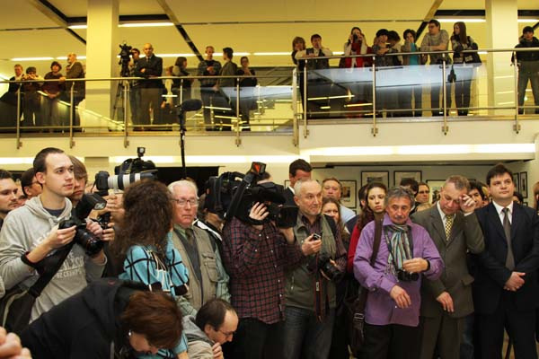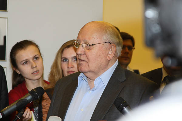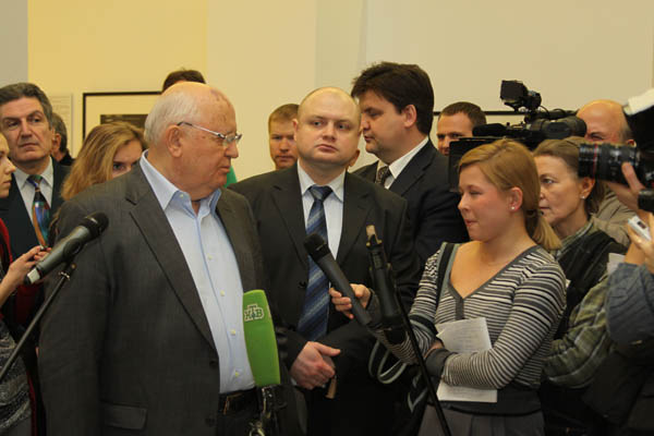 В ходе вернисажа М.С.Горбачев ответил на многочисленные вопросы журналистов.
