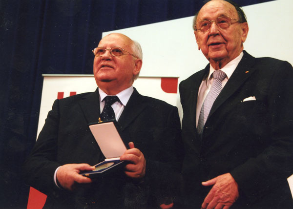 Активная политическая, но также и социальная, культурная и международная деятельность Михаила Горбачева отмечается Медалью им. Карла Фридриха фон Вайцзеккера. В этом случае можно сказать, что имя, которое носит медаль, славит награжденного, а лауреат славит того, чье имя носит медаль.