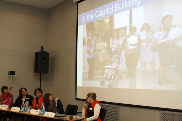 Целью выступлений и последующего обсуждения был обмен опытом организации успешных женских инициатив, информирование о них и установление связей между женщинами, работающими в разных областях.