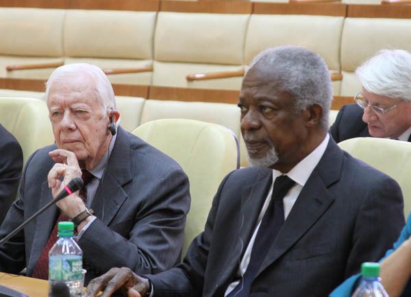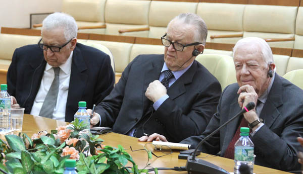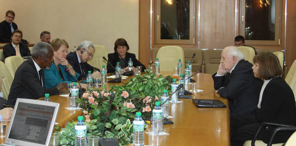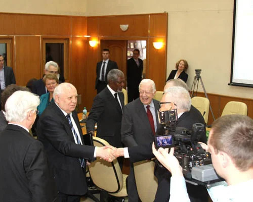 29 апреля состоялась встреча М.С.Горбачева с находящейся в Москве делегацией ветеранов мировой политики («Старейшины»). В составе делегации – бывший генеральный секретарь ООН Кофи Аннан, бывший премьер-министр Норвегии Гру Харлем Брунтланд, бывший президент США Джимми Картер, бывший президент Финляндии Мартти Ахтисаари, бывший президент Мексики ЭрнестоСедильо, бывший министр иностранных дел Алжира Лахдар Брахими.