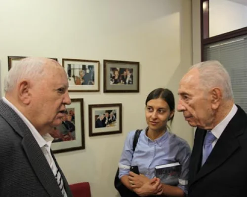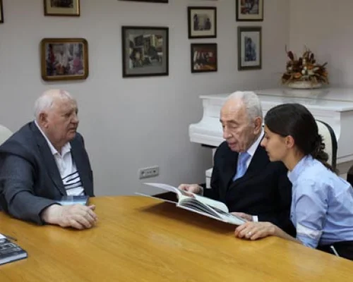 Шимон Перес познакомил М.С.Горбачева с деятельностью своего института, рассказал о планах после ухода с госслужбы. Одно из главных мест по-прежнему будет занимать вопрос решения палестинской проблемы мирными средствами. Большое внимание будет уделено вопросам экологии, поддержке исследований в области новых технологий. Шимон Перес подарил М.С.Горбачеву свою книгу «Мой Бен-Гурион» и поздравил его с рождением правнука.