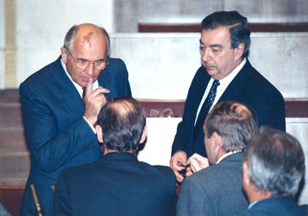 Меня связывали с Евгением Максимовичем многие годы дружбы и совместной деятельности. В годы перестройки я предложил ему принять непосредственное участие в реформировании нашей государственной системы. Он стал председателем Совета Союза нового, демократически избранного Верховного Совета. Его участие в строительстве демократического парламента было активным и результативным. Он проявил в эти годы качества, которые я всегда в нем ценил: взвешенность в оценках и решениях, умение работать с людьми. Именно тогда Евгений Максимович стал известен всей стране, получил широкую поддержку и уважение.