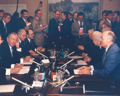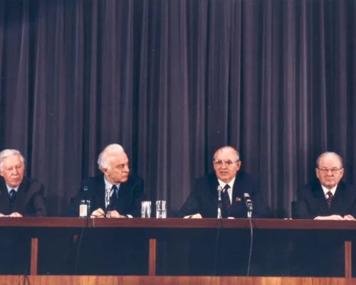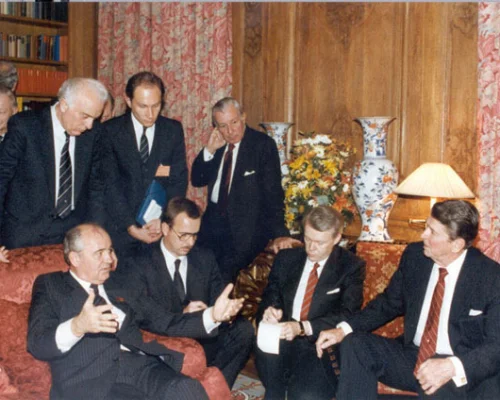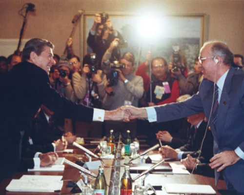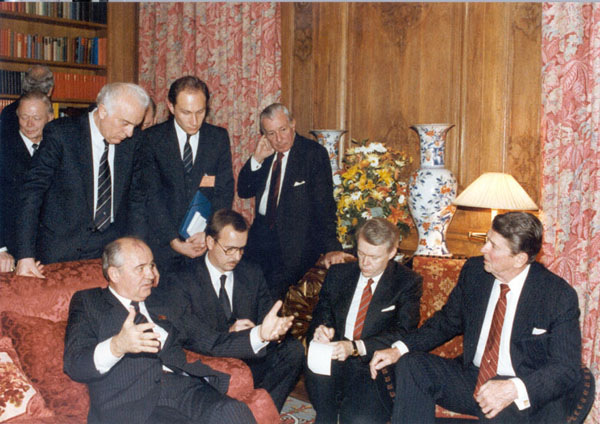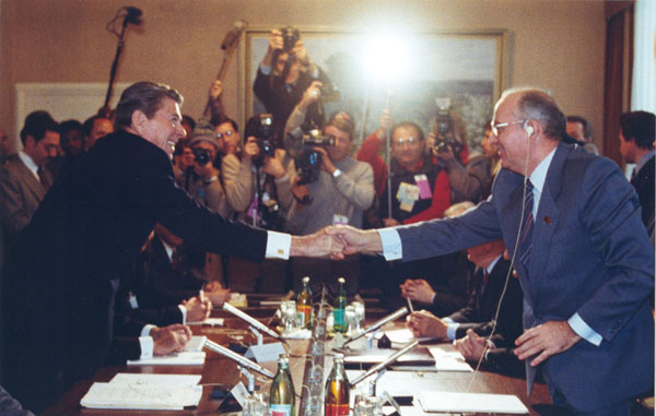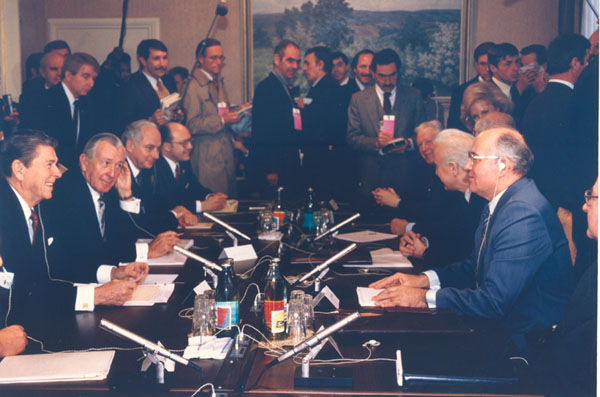 …Формирование текста итогового документа ночью было завершено, а на следующее утро состоялась заключительная процедура встречи. В зале, украшенном флагами Советского Союза и Соединенных Штатов, в присутствии многочисленных представителей прессы, мы с президентом поднимаемся с разных углов на возвышение, где стоит столик с папками. Идем навстречу друг другу, пожимаем руки. Это, конечно, зрелище, которого с надеждой ждал весь мир после стольких лет ожесточенной идеологической войны.