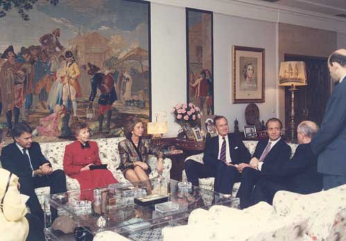 Фелипе Гонсалес, Р.М.Горбачева, королева София, Джордж Буш, М.С.Горбачев, П.Р.Палажченко