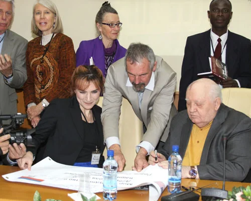 М.С. Горбачев подробно ответил на многочисленные вопросы гостей. «Я не занимаю официальных должностей, не представляю российское государство», - сказал он. – «Но я уверен, что опыт тех лет, когда мы совместными усилиями покончили с холодной войной, актуален и сегодня». Он напомнил о словах президента Джона Кеннеди: «Ошибается тот, кто думает, что мир будущего – это Pax Americana. Или это будет мир для всех, или его вообще не будет». Надо уважать друг друга, вести диалог на равных, искать решения накопившихся проблем.