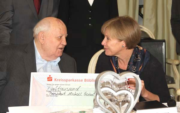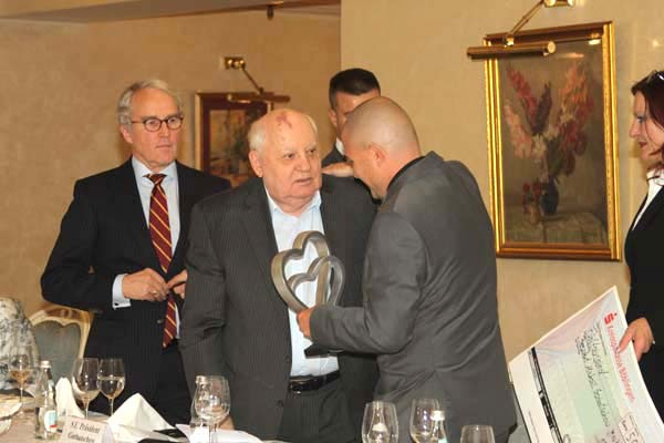 Высокую оценку действиям М. С. Горбачева в годы Перестройки, направленным на прекращение «холодной войны», а также его активности уже после того, как он сложил с себя полномочия и обязанности Президента и возглавил Международный фонд социально-экономических и политологических исследований (Гобачев-Фонд), дал Посол Федеративной Республики Германия в РФ Рюдигер фон Фрич. Он подчеркнул особые заслуги М. С. Горбачева в деле воссоединения Германии.