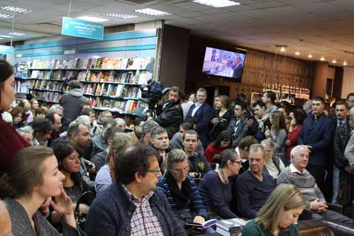 Автограф-сессия, начавшись после семи вечера, продолжалась до 23.30, так что пришлось продлить время работы магазина. За вечер было продано 250 экземпляров книги, а во время первой презентации издания - 400.