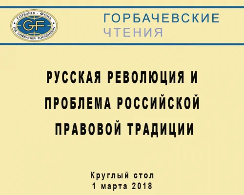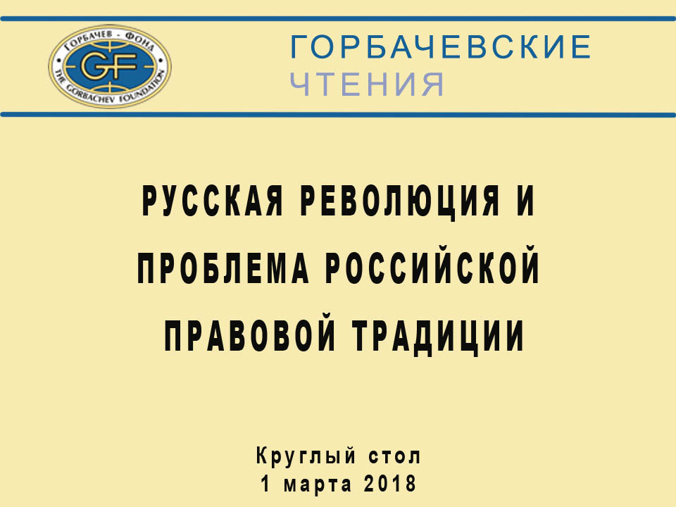 1 марта в Горбачев-Фонде в рамках проекта Горбачевские чтения состоялся Круглый стол «Русская Революция и проблема российской правовой традиции». Сдокладом выступил доктор философских наук, профессор Андрей Николаевич Медушевский (НИУ Высшая школа экономики).