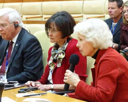 Стоящие перед человечеством глобальные проблемы можно решить только вместе, объединив усилия, подчеркнул М.С. Горбачев. У наших стран есть и серьезные внутренние проблемы. «Но не надо искать их источники вовне, обвинять Россию в американских проблемах. Мы сами должны решать свои проблемы, - продолжал он. – Я вспоминаю, как лет десять-двенадцать назад выступал перед большой аудиторией на среднем Западе США. Один молодой человек спросил меня: что нужно делать, чтобы исправить положение в нашей стране, которое ухудшается? Я удивился такому вопросу, но он настаивал на ответе. И я сказал: Не буду давать рецептов, но я считаю, что Америке нужна своя перестройка. А какая – решать вам».