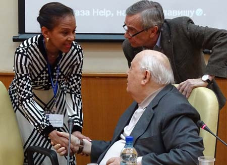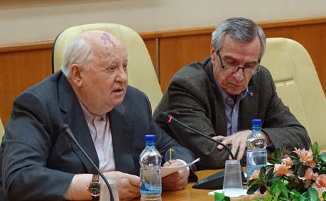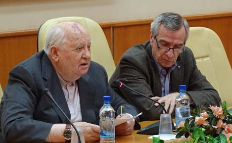 Но даже в самых трудных ситуациях, продолжал М.С. Горбачев, нельзя впадать в панику, в пессимизм. «Знаю, что среди вас есть ветераны антивоенного движения, люди, которые в годы холодной войны настойчиво призывали к диалогу, к прекращению гонки вооружений. Замечательно, что вы не прекращаете эту борьбу и сегодня. Голос гражданского общества должен звучать!