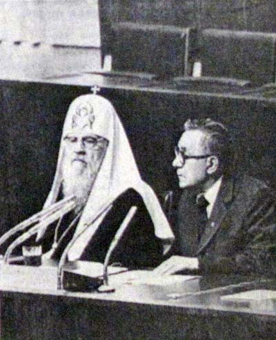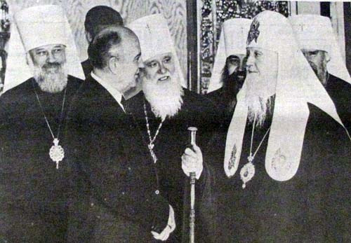 Советский лидер хвалил Церковь за «миротворческую деятельность» и отметил меры, которыми государство отвечало на лояльность Церкви: передачу в ее распоряжение важнейших монастырей и то, что «государство обеспечило необходимые условия для проведения в стране празднования 1000-летия введения христианства на Руси»[iv].