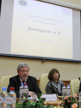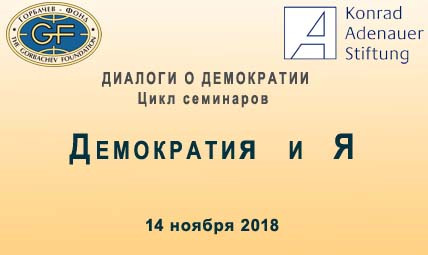 14 ноября состоялся третий в 2018 году семинар в рамках цикла «Диалоги о демократии», организованный совместно Горбачев-Фондом и Московским Представительством Фонда Конрада Аденауэра.Тема семинара «Демократия и Я»