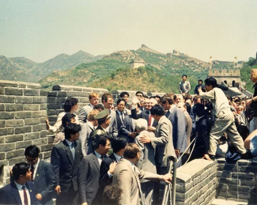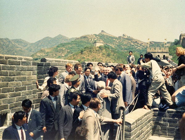 Общаясь напрямую с молодыми китайцами в Пекине и Шанхае, мы убедились в ином. Молодые люди — студенты, учащиеся школ, рабочие и служащие — охотно вступали в диалог, говорили о своем желании побывать в Советском Союзе. Меня глубоко тронул их живой, неподдельный интерес к тому, что происходит в СССР, одобрительные высказывания в связи с восстановлением нормальных отношений между нашими странами. В разговоре с ними на Великой китайской стене я рассказал о совместном с китайскими руководителями решении развивать сотрудничество между Китаем и Советским Союзом и услышал в ответ: «Это и наше желание, наша мечта».
