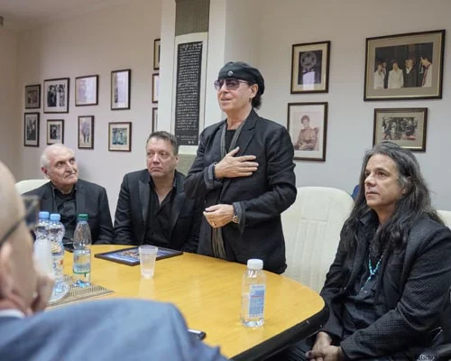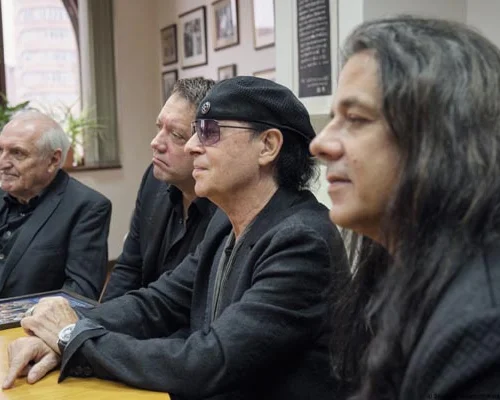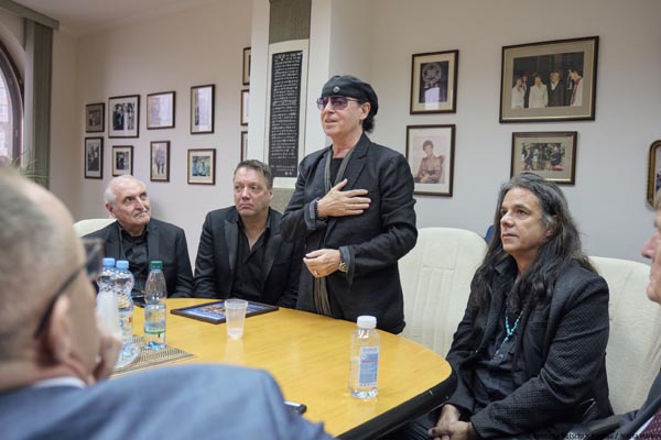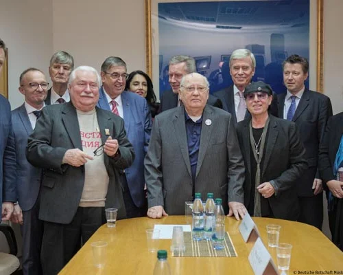 Затем к М.С. Горбачеву и его гостям присоединилась группа деятелей культуры и бизнеса из ФРГ, в том числе участники рок-группы «Скорпионс», прославившейся в 1980-х годах своей песней «Ветер перемен», которую они посвятили перестройке. М.С. Горбачев обратился к гостям с приветствием:
