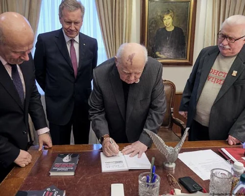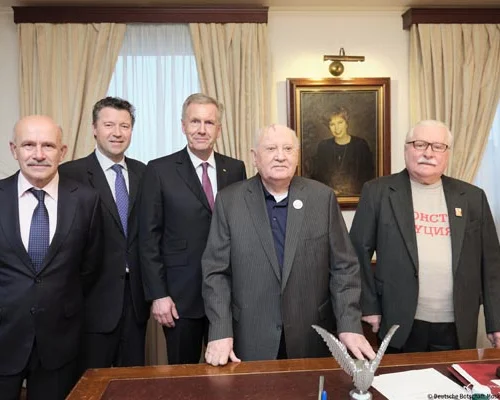 Лех Валенса также подчеркнул выдающуюся роль М.С. Горбачева в прекращении холодной войны. Старая эпоха ушла в прошлое, и это огромное достижение, сказал он, но здание нового мирового порядка еще не построено, даже не заложен его фундамент. Демократии угрожают популисты, демагоги, апатия избирателей.