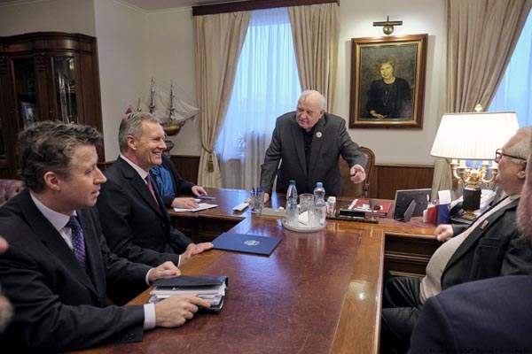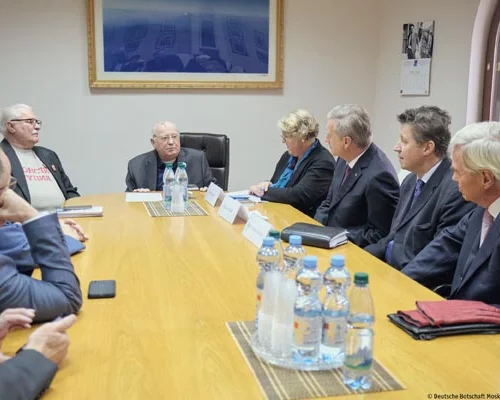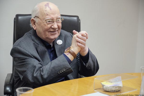 Кристиан Вульф, которого сопровождал посол ФРГ в России Геза Андреас фон Гайр, передал М.С. Горбачеву письмо президента ФРГ Ф.-В. Штайнмайера. Он выразил бывшему президенту СССР признательность народа Германии за позицию, занятую нашей страной тридцать лет назад. Без этого мирное объединение Германии было бы невозможно. Немцы помнят об этом и благодарны вам, сказал К. Вульф.