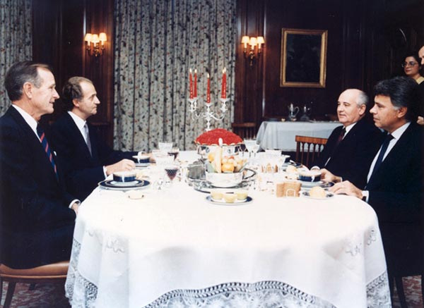Президента СССР М.С.Горбачева, Президента США Джорджа Буша, премьер-министра Испании Фелипе Гонсалеса и короля Испании Хуана Карлоса I