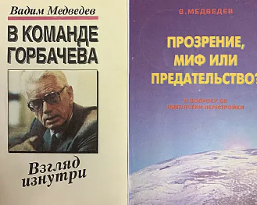 С Вадимом Андреевичем Медведевым я впервые увиделся году в 1985-м. Он не был тогда ни членом Политбюро, ни секретарём ЦК КПСС – по-моему, его только-только назначили заведующим отделом ЦК. И увиделись мы с ним в по-своему весьма любопытном месте: в совминовском Доме отдыха, в знаменитых «Соснах». Я оказался там в составе скромной группы «спичрайтеров», помогавших тогдашнему кандидату в члены Политбюро, первому заместителю председателя Совета министров СССР Гейдару Алиеву в написании небольшой официальной, но публичной речи. И как раз в эти же дни в «Сосны» высадилась куда более значительная пишущая компания из ЦК КПСС, которую как раз и возглавлял Вадим Медведев. Тогда ещё молодой, задорно вихрастый, поджарый. Увиделись мы в сосновской столовой – обедали за соседними столами. Что приятно удивило меня тогда – Медведев являлся в неизменном спортивном костюме! Все вокруг почти что в тройках, при галстуках, особенно мы, совминовская узкая «шарашка», а Медведев, самый большой начальник серди нас и самое официальное лицо – в спортивном. И поведения соответствующего – вполне человеческого. Не небожительского. Эта деталь уже тогда подкупила меня, начинающего номенклатурщика, но по природе своей так и остающегося журналистом, тем более – выходцем из «Комсомольской правды».
