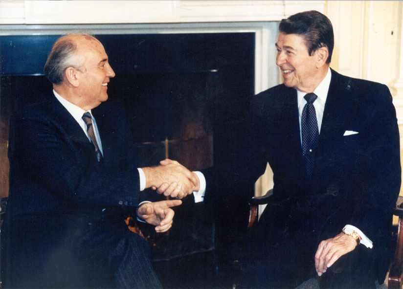 После этого женевские переговоры по ракетам средней дальности пошли в гору, и 8 декабря 1987 года оба государственных деятеля подписали в Вашингтоне самый важный в мировой истории договор о разоружении: Договор о ракетах средней и меньшей дальности (был расторгнут Дональдом Трампом 1 февраля 2019 года; Владимир Путин последовал его примеру днём позже). Он впервые и единственный раз позволил полностью отказаться от целой категории вооружений, самой опасной, уничтожить все ракетные системы наземного базирования с дальностью от 500 до 5500 километров. В количественном отношении Советский Союз заключил «неравную сделку»: у него было 1846 ракет, подлежащих утилизации, в то время как у Запада ‒ ровно на 1000 меньше, 846. Не в последнюю очередь Горбачёва за это до сих пор ругают его соотечественники, всё ещё пребывающие в «старом мышлении» с приоритетом количества... Но сам Горбачев мыслил в качественных категориях, и эта мера предотвратила острую угрозу ядерной войны в Европе на три десятилетия вперед ‒ вплоть до упомянутой выше отмены ДРСМД.